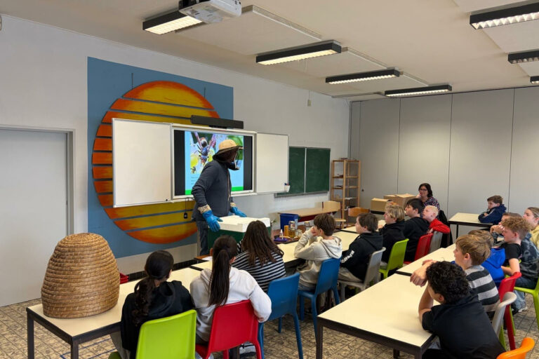Leerlingen leren over het beschermen van de bijen en biodiversiteit in Rotem en omgeving
