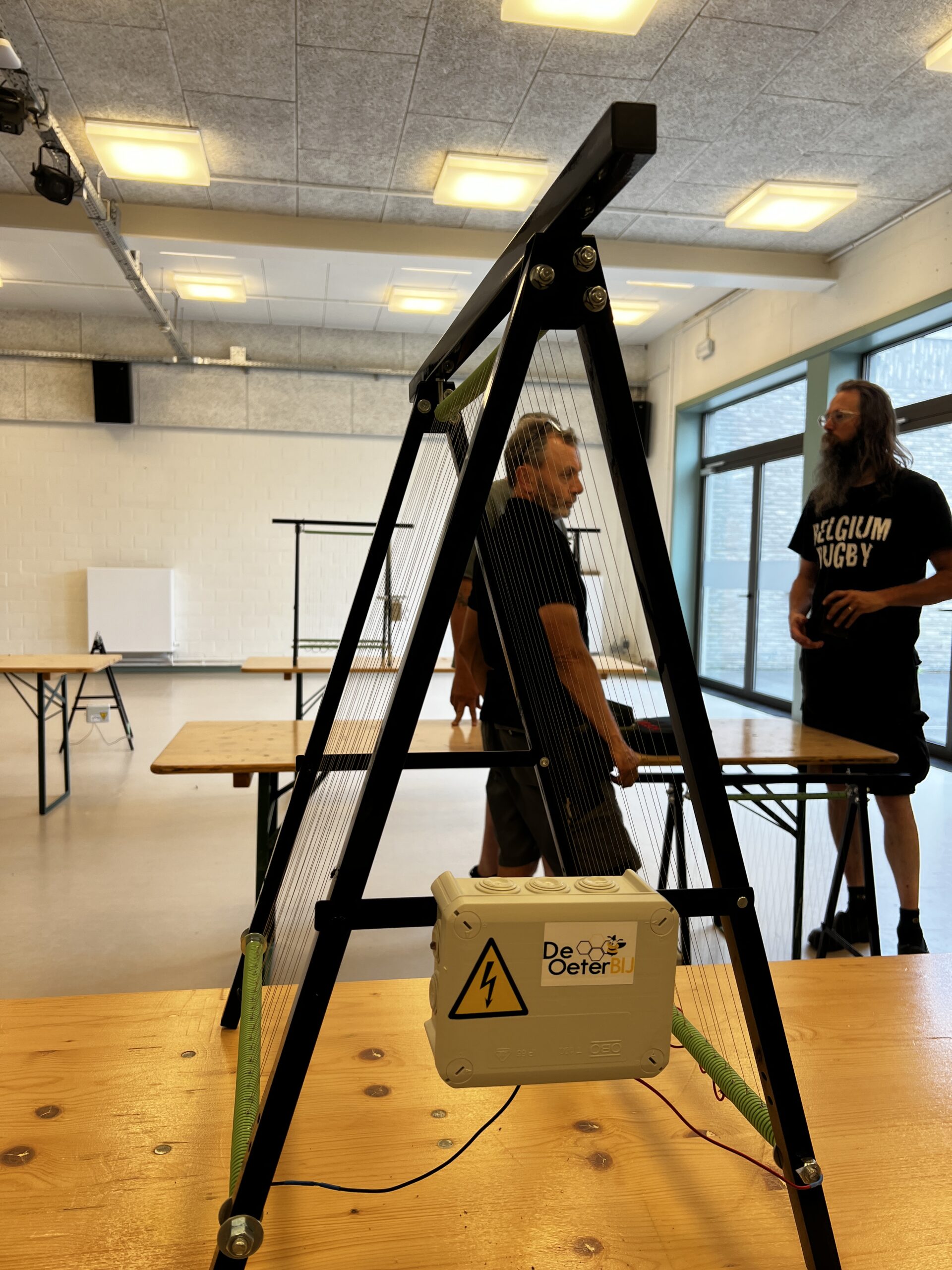 De zogeheten “elektrische harp” is een efficiënt hulpmiddel in de bestrijding van de Aziatische hoornaar. Deze invasieve soort vormt een ernstige bedreiging voor onze honingbijen, en dankzij dit collectieve werk kunnen we als vereniging actie ondernemen op het veld.
