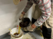 Maak de pvc-buis los van de bodemplaat en haal de siliconemal uit de pvc-buis.
